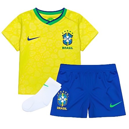 Future champions need the kit to match. This replica kit includes a jersey, shorts, and socks for a complete look inspired by the elite. The breathable fabric feels soft and helps keep sweat off their skin for lasting comfort. A dynamic look for one of the world’s most dynamic teams! Show off your pride and passion for A Seleção with this home stadium shirt. Offering a brighter and more dynamic yellow base when compared to previous editions, the shirt also sees green and blue accents on the collar and cuffs. It’s base also features a debossed jaguar pattern on the front. Patented Dri-FIT technology is also present, making it a replica of the shirt worn by the team during matches at the 2022 FIFA World Cup.